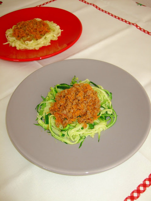 É perfeitamente possível comer uma bolonhesa saudável! Basta que para isso façamos a carne com poucas calorias e o esparguete também. Este esparguete é feito com courgete. Pode-se fazer sem casca para ficar ainda mais parecido ao verdadeiro esparguete, ou então com a casa para não se desperdiçar nada e para ficar mais colorido. Eu fiz das duas formas para que possam ver a diferença!